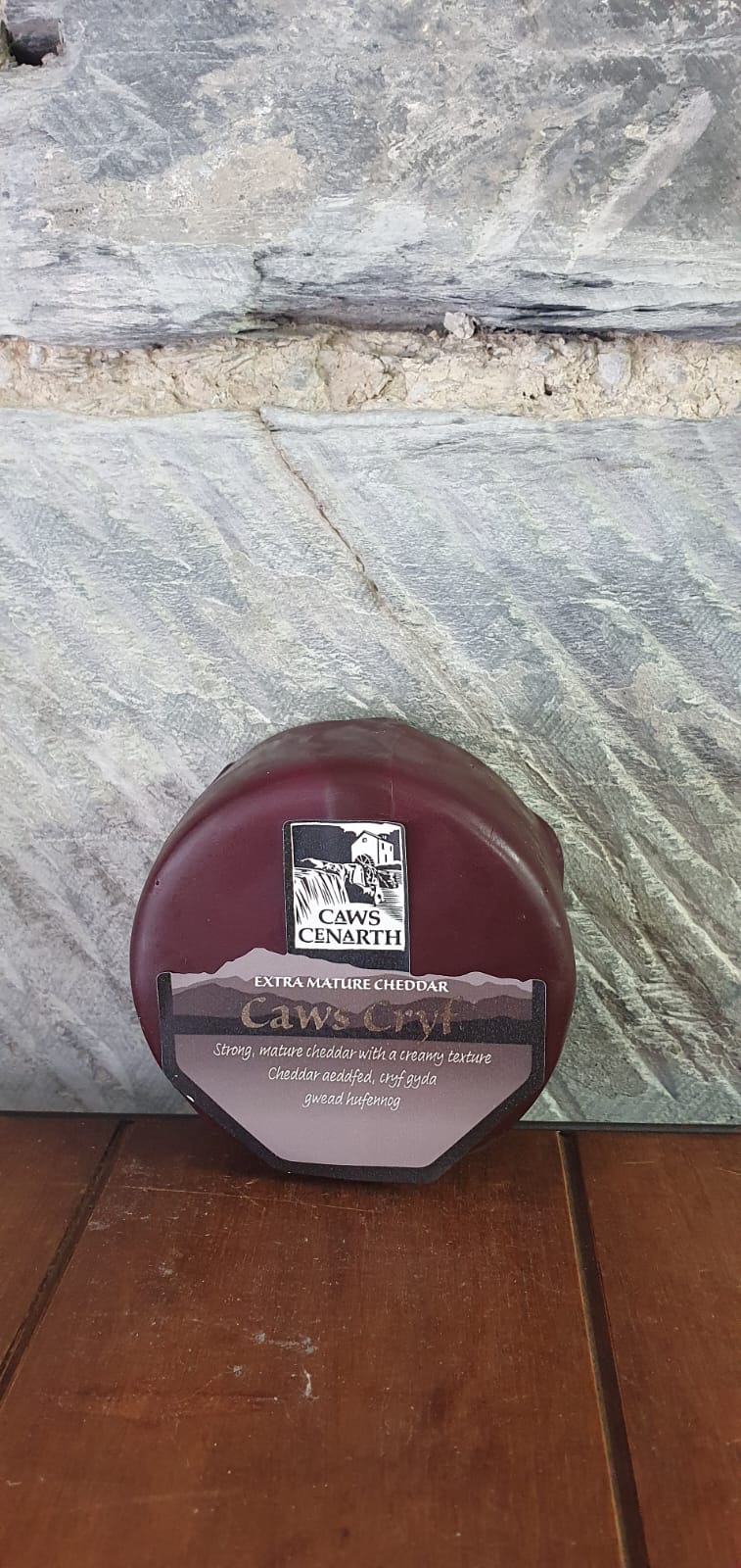 Caws Cryf (meaning ‘strong cheese’) is an extra-mature Cheddar made by Caws Cenarth in Carmarthenshire. This wax-covered mini truckle has an intense, rich flavour and the creaminess typical of Caws Cenarth cheeses. Add this to a cheeseboard and enjoy with a slice of apple or a glass of cider for the perfect flavour combination.